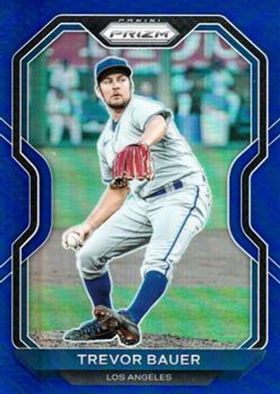 The Trevor Bauer 2021 Prizm #46 Blue card is 1 of 87 Trevor Bauer's card variations in the 2021 Prizm set being tracked by Sports Card Investor, including Base, Blue Velocity, Carolina Blue, Cosmic Haze, and Giraffe.