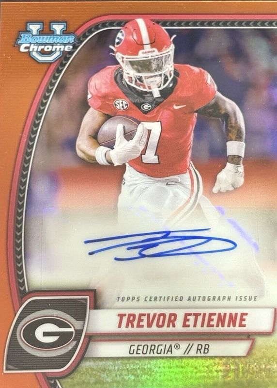 2024 Bowman Chrome U Trevor Etienne Chrome Orange Prospect Auto Georgia /25