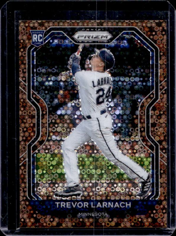 The Trevor Larnach 2021 Prizm #55 Bronze Donut Circles /40 Rookie card is 1 of 43 Trevor Larnach's card variations in the 2021 Prizm set being tracked by Sports Card Investor, including Base, Blue, Blue Velocity, Carolina Blue, and Cosmic Haze.