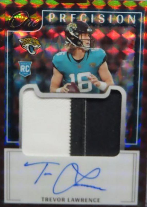 The Trevor Lawrence 2021 One #301 Precision Rookie Patch Autographs - Bronze (/20) card in Raw condition has not changed in price in the last 30 days and was last sold for $399.00 .