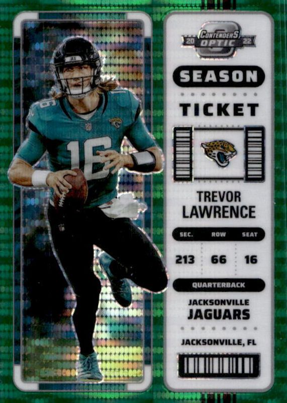 2022 Panini Contenders Optic Trevor Lawrence Season Ticket Green Pulsar Prizm/30