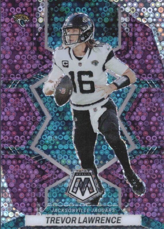 2022 Panini Mosaic #88 Trevor Lawrence No Huddle Purple Disco Prizm #'d /50 Jags