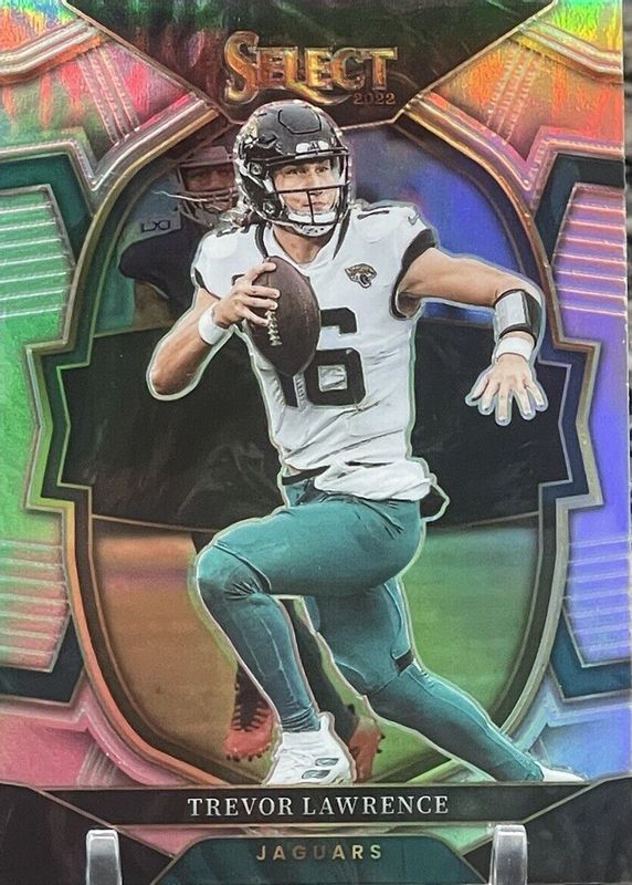 This card is 1 of 179 Trevor Lawrence's card variations in the 2022 Select set being tracked by Sports Card Investor, including Club Level, Club Level Black & Green Die-Cut, Club Level Black & Red Die-Cut, Club Level Disco, and Club Level Green & Yellow Die-Cut.
