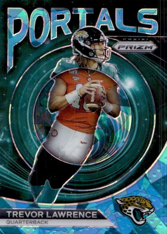2023 Panini Prizm Portals Jaguars Clemson Blue Ice 12/99 Trevor Lawrence