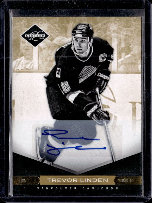 The Trevor Linden 2011 Limited #5 Monikers Gold /25 card is 1 of 16 Trevor Linden's card variations in the 2011 Limited set being tracked by Sports Card Investor, including #28 Base /299, #5 Base /299, #5 Ruby Spotlight /49, #28 Ruby Spotlight /49, and #28 Monikers Gold /25.