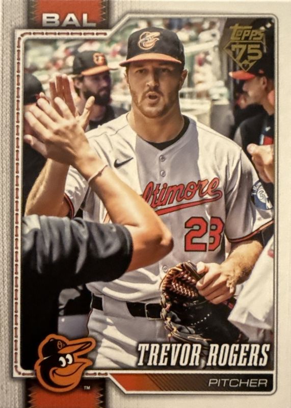 Trevor Rogers' Baseball cards are available in at least 19 sets. Trevor Rogers' biggest 7-day price movers are 2021 Topps Chrome #RA-TR Rookie Auto, 2026 Topps #80 Golden Mirror Variation /(SSP), and 2017 Bowman Draft #CDA-TR Chrome DP Auto - Gold Wave Refractor /50 (1st).