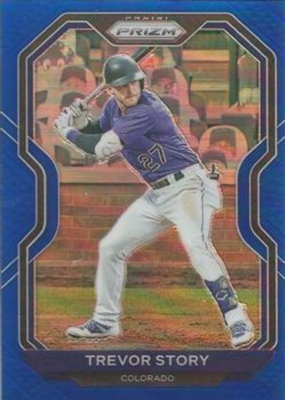 The Trevor Story 2021 Prizm #23 Blue card is 1 of 43 Trevor Story's card variations in the 2021 Prizm set being tracked by Sports Card Investor, including Base, Blue Velocity, Carolina Blue, Cosmic Haze, and Giraffe.