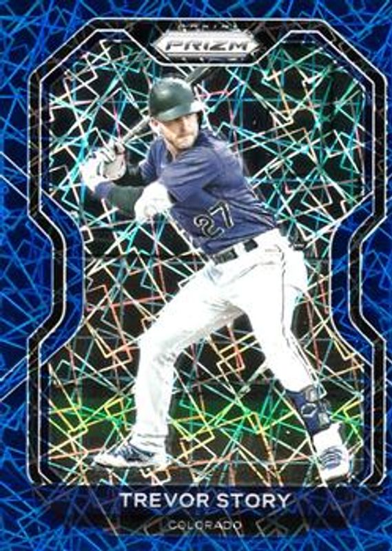 The Trevor Story 2021 Prizm #23 Blue Velocity card is 1 of 43 Trevor Story's card variations in the 2021 Prizm set being tracked by Sports Card Investor, including Base, Blue, Carolina Blue, Cosmic Haze, and Giraffe.