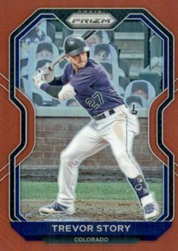 The Trevor Story 2021 Prizm #23 Red card is 1 of 43 Trevor Story's card variations in the 2021 Prizm set being tracked by Sports Card Investor, including Base, Blue, Blue Velocity, Carolina Blue, and Cosmic Haze.