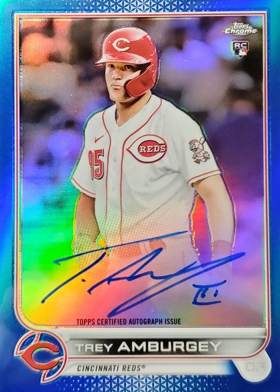 TREY AMBURGEY 2022 TOPPS CHROME BLUE REFRACTOR AUTO RC /150 CINCINATTI REDS SPRC