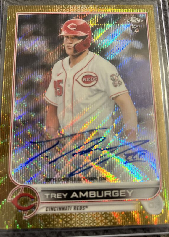 2022 Topps Chrome Trey Amburgey Gold Wave Refractor Rookie Auto RC #24/50 Reds