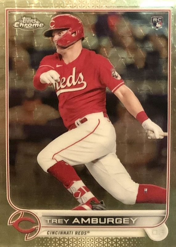 This card is 1 of 41 Trey Amburgey's card variations in the 2022 Topps Chrome set being tracked by Sports Card Investor, including Base, Black & White Mini-Diamond Refractor, Negative Refractor, Pink Refractor, and Prism Refractor.