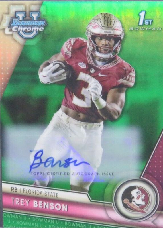 TREY BENSON 2023 1st Bowman Chrome U GREEN AUTO /99 FSU, Arizona Cardinals