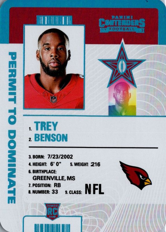 2024 Contenders Trey Benson #33 RC "Permit To Dominate" Case Hit🔥HOT🔥SSP