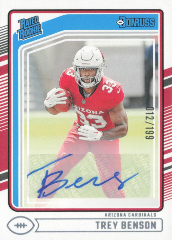 TREY BENSON RC AUTO 2024 DONRUSS RATED ROOKIE AUTOGRAPH #d /199 Cardinals RB 💪