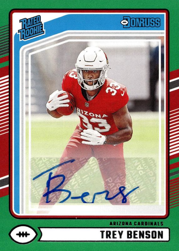 2024 Donruss Rated Rookie Trey Benson #326 Green Auto Cardinals Autograph