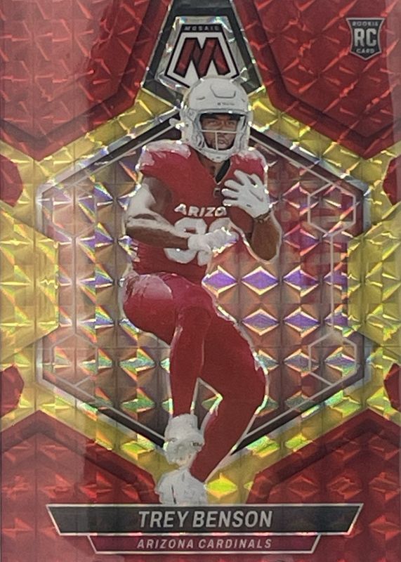 Best Prices Available For Sale of Trey Benson 2024 Mosaic #360 Choice Fusion Red & Yellow /80