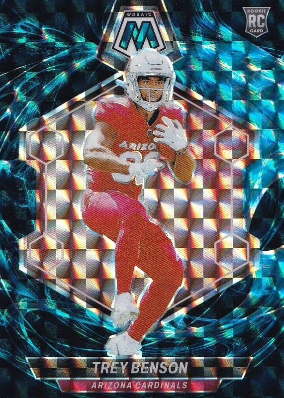 This card is 1 of 112 Trey Benson's card variations in the 2024 Mosaic set being tracked by Sports Card Investor, including Base, NFL Debut, Green, Mosaic, and NFL Debut - Green.