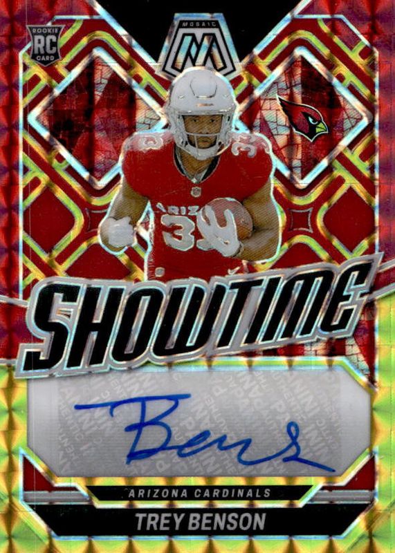 2024 Panini Mosaic Showtime Red Yellow Fusion AUTO TREY BENSON SSP Cardinals!