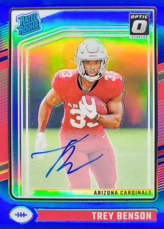 2024 Donruss Optic - Trey Benson Rated Rookie #293 - Blue Auto 83/99 - Cardinals