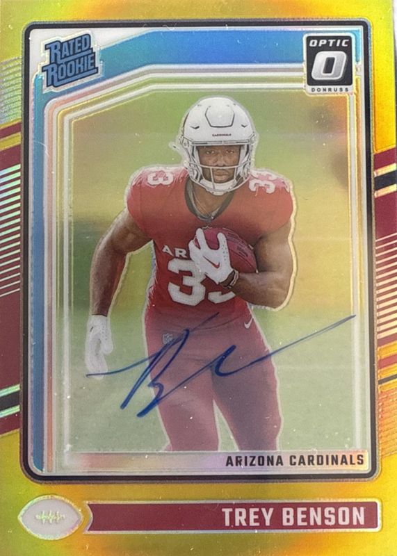 Best Prices Available For Sale of Trey Benson 2024 Optic #293 Rated Rookie Autographs - Gold /10