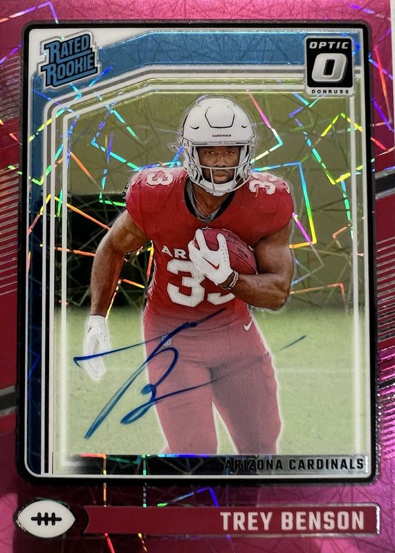 Auctions Ending Soon for Trey Benson 2024 Optic #293 Rated Rookie Autographs - Pink Velocity /50 RAW
