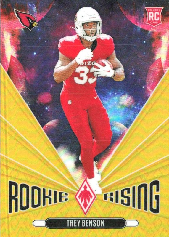 This card is 1 of 20 Trey Benson's card variations in the 2024 Phoenix set being tracked by Sports Card Investor, including Rookie Rising, Rookie Rising - Hyper, Rookie Rising - Lazer, Rookie Rising - Orange, and Rookie Rising - Pandora.