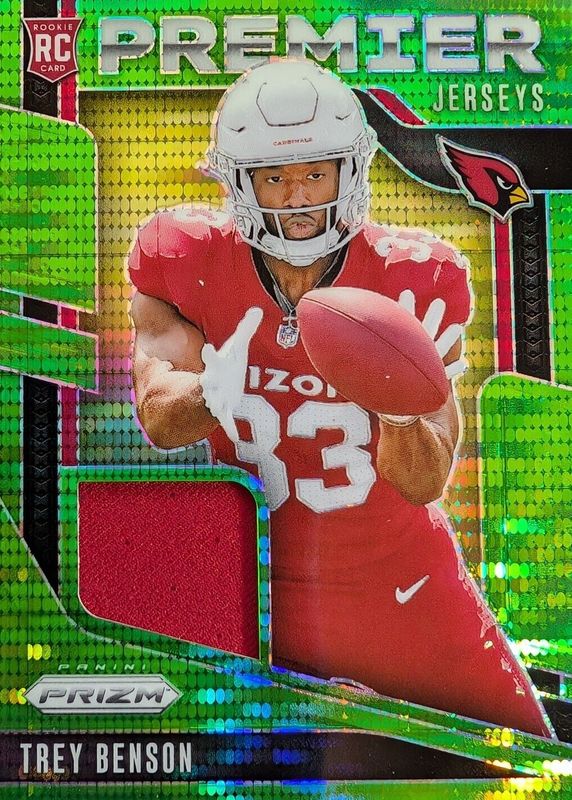 TREY BENSON 2024 PANINI PRIZM ROOKIE PREMIER JERSEYS NEON GREEN PULSAR ARIZONA