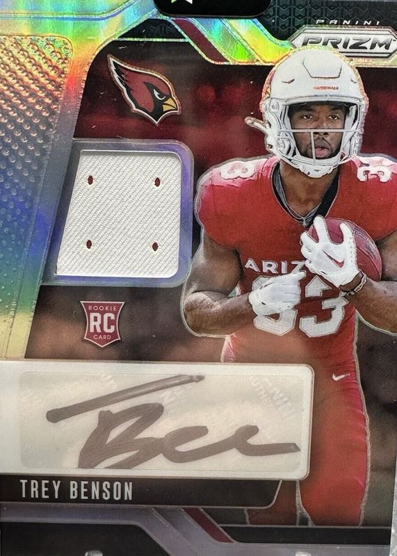 The Trey Benson 2024 Prizm #RPA-TBN Rookie Patch Auto - Silver /99 card in Raw condition has not changed in price in the last 30 days and was last sold for $10.00 .
