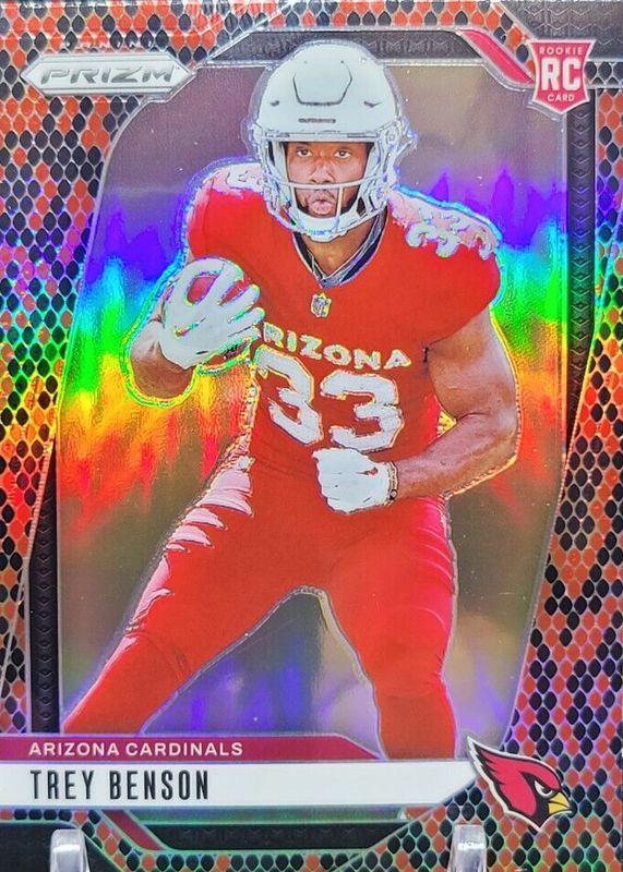 The Trey Benson 2024 Prizm #392 Snakeskin /(SSP) Rookie card in Raw condition has not changed in price in the last 30 days and was last sold for $62.50 .