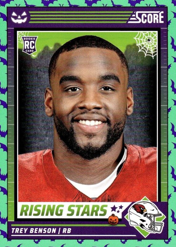 This card is 1 of 3 Trey Benson's card variations in the 2024 Score-A-Treat set being tracked by Sports Card Investor, including Rising Stars - Orange Pumpkins, and Rising Stars - Trick or Treat /99.