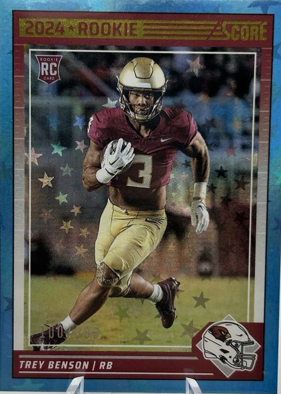 The Trey Benson 2024 Score #354 Stars /399 Rookie card in Raw condition has not changed in price in the last 30 days and was last sold for $1.91 .