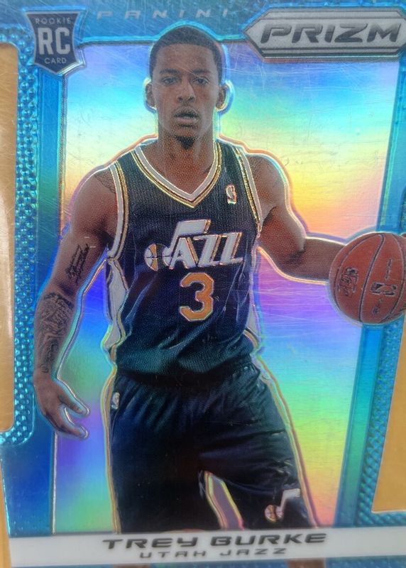 This card is 1 of 13 Trey Burke's card variations in the 2013 Prizm set being tracked by Sports Card Investor, including Base, Blue, Green, Red, and Red White Blue Mosaic.
