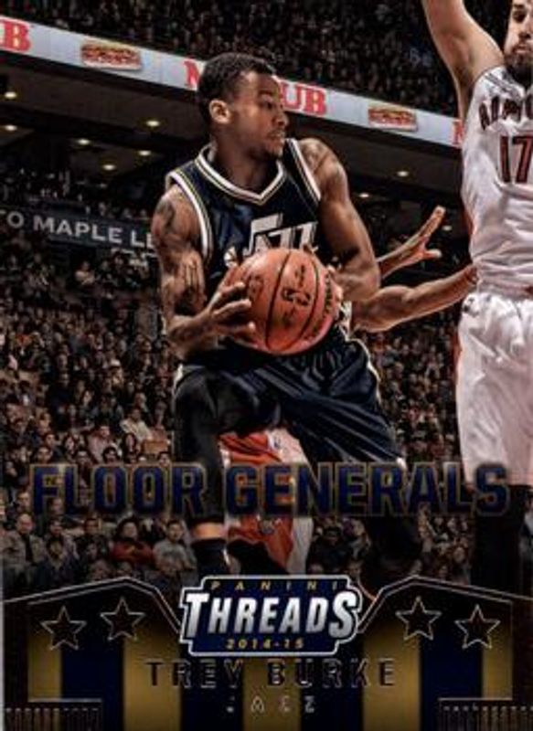 The Trey Burke 2014 Threads #14 Floor Generals card is 1 of 11 Trey Burke's card variations in the 2014 Threads set being tracked by Sports Card Investor, including Base, Century Proof Red /199, Century Proof Gold /25, Century Proof Platinum /1, and Floor Generals - Century Proof Red /99.