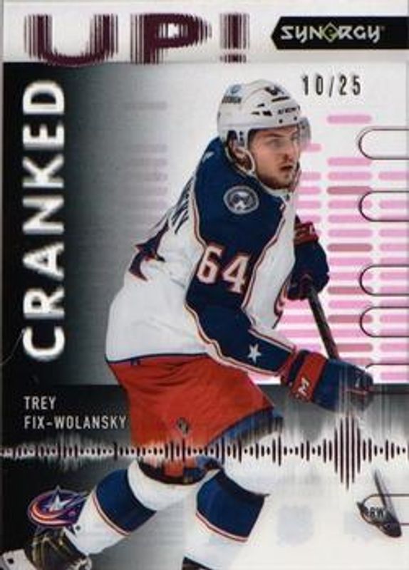 The Trey Fix-Wolansky 2022 Upper Deck Synergy #CU-TF Cranked Up - Pink /25 Rookie card is 1 of 23 Trey Fix-Wolansky's card variations in the 2022 Upper Deck Synergy set being tracked by Sports Card Investor, including Base /23, Red, Red Codes, Purple /49, and Gold /25.