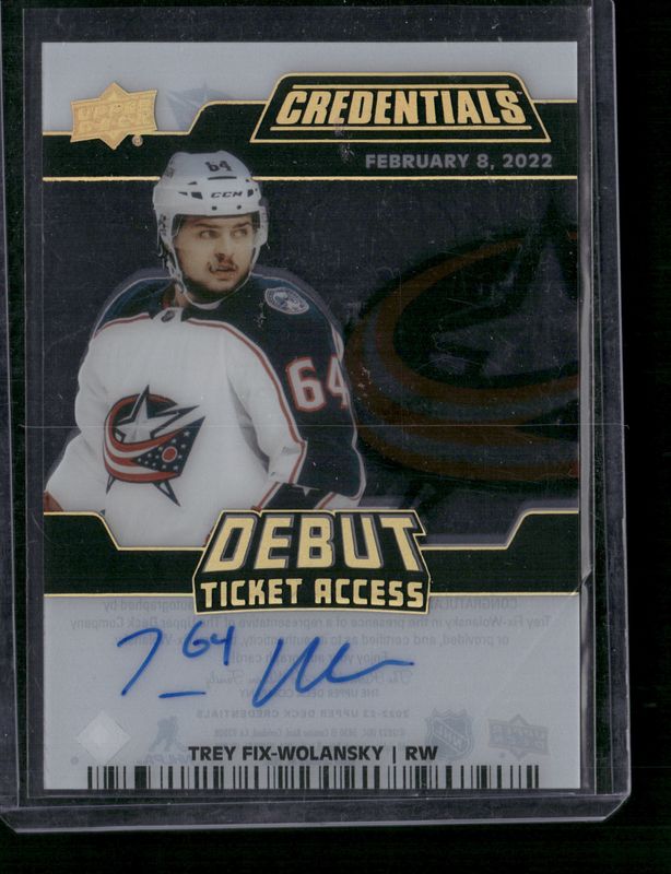 Trey Fix-Wolansky 2023 Upper Deck Credentials #DTA-TF 2022 Upper Deck Credentials Update: Debut Ticket Access Autographs - Acetate /99 RAW Price Guide