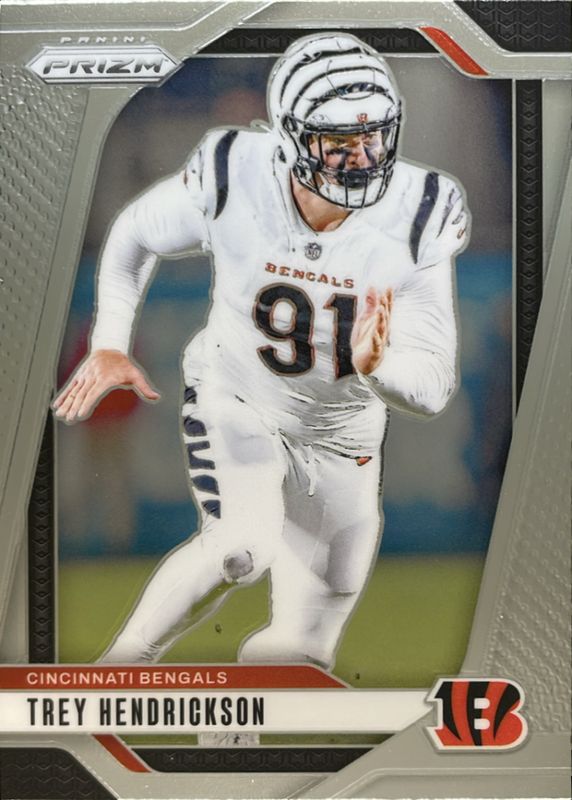 The Trey Hendrickson 2024 Prizm #59 Base card is 1 of 84 Trey Hendrickson's card variations in the 2024 Prizm set being tracked by Sports Card Investor, including Choice Blue Yellow Green, Choice Silver, Disco, Green, and Green Ice.