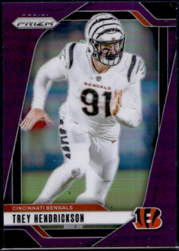 The Trey Hendrickson 2024 Prizm #59 Purple /125 card is 1 of 84 Trey Hendrickson's card variations in the 2024 Prizm set being tracked by Sports Card Investor, including Base, Choice Blue Yellow Green, Choice Silver, Disco, and Green.