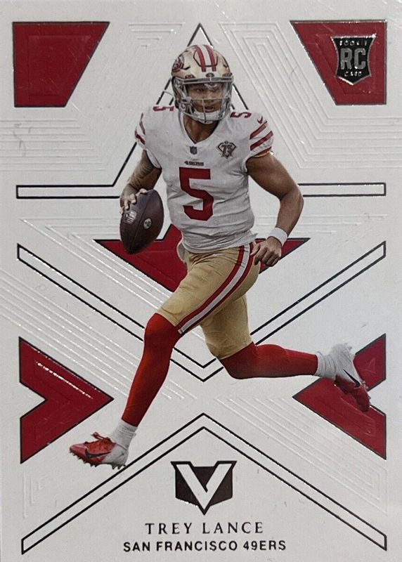 The Trey Lance 2021 Chronicles #V-3 Vertex Rookie card in Raw condition has not changed in price in the last 30 days and was last sold for $0.99 .