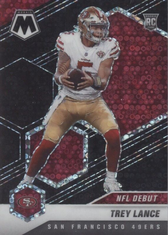 The Trey Lance 2021 Mosaic #244 NFL Debut - No Huddle Black /1 Rookie card in Raw condition has not changed in price in the last 30 days.