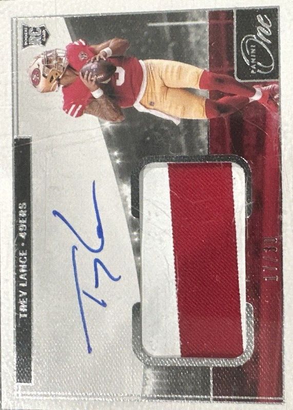 The Trey Lance 2021 One #3 Rookie Patch Auto (/30) card in Raw condition has not changed in price in the last 30 days and was last sold for $54.00 .