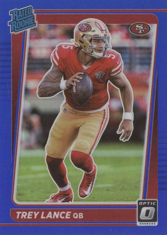 TREY LANCE 2021 PANINI DONRUSS OPTIC RATED ROOKIE RC BLUE PRIZM #203 /179 49ERS
