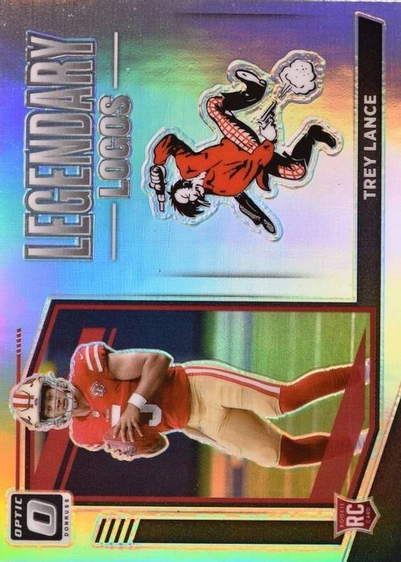 The Trey Lance 2021 Optic #LL-18 Legendary Logos Rookie card in Raw condition has moved down -$0.19 (-16.1%) in the last 30 days and was last sold for $0.99 .