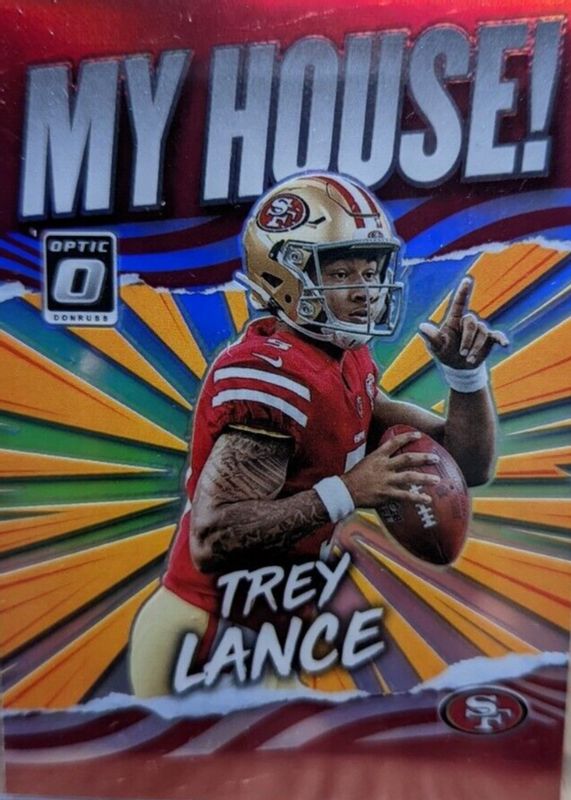 The Trey Lance 2021 Optic #MH-3 My House! Rookie card in Raw condition has not changed in price in the last 30 days and was last sold for $1.65 .