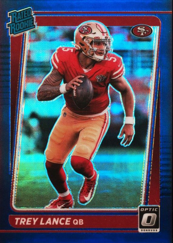 This card is 1 of 91 Trey Lance's card variations in the 2021 Optic set being tracked by Sports Card Investor, including Base, Blue Hyper, Blue Scope, Bronze, and Green Velocity.