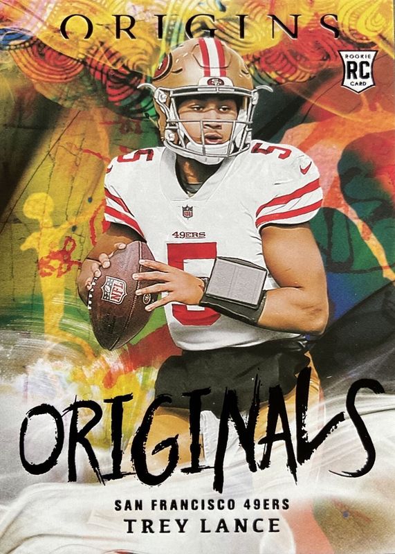 The Trey Lance 2021 Origins #O-28 Originals /(SSP) Rookie card in Raw condition has not changed in price in the last 30 days and was last sold for $2.00 .
