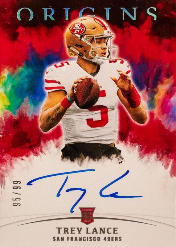 /99 TREY LANCE 2021 PANINI ORIGINS ROOKIE AUTOGRAPH ON CARD RED RC 49ERS🔥