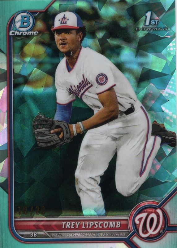 This card is 1 of 9 Trey Lipscomb's card variations in the 2022 Bowman Draft Sapphire Edition set being tracked by Sports Card Investor, including Chrome (1st), Chrome - Yellow /99 (1st), Chrome - Green /50 (1st), Chrome - Orange /25 (1st), and Chrome - Gold /15 (1st).