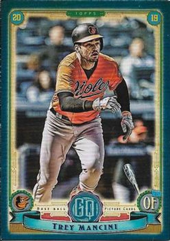 The Trey Mancini 2019 Topps Gypsy Queen #148 Indigo /250 card is 1 of 19 Trey Mancini's card variations in the 2019 Topps Gypsy Queen set being tracked by Sports Card Investor, including Base, Bazooka Back, GQ Logo Swap, Green, and Missing Nameplate.