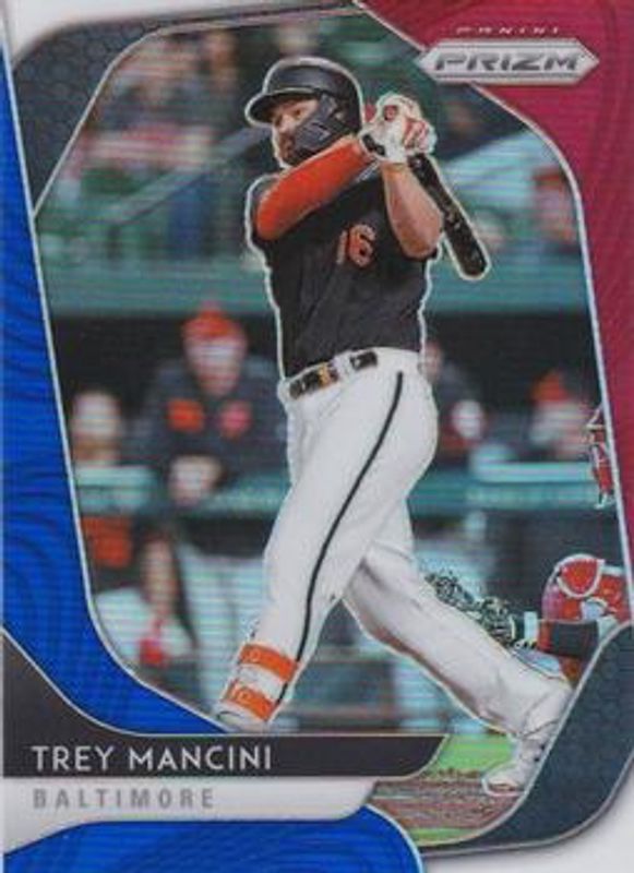 The Trey Mancini 2020 Prizm #249 Red White Blue card is 1 of 42 Trey Mancini's card variations in the 2020 Prizm set being tracked by Sports Card Investor, including Base, Blue, Carolina Blue, Cosmic Haze, and Green.